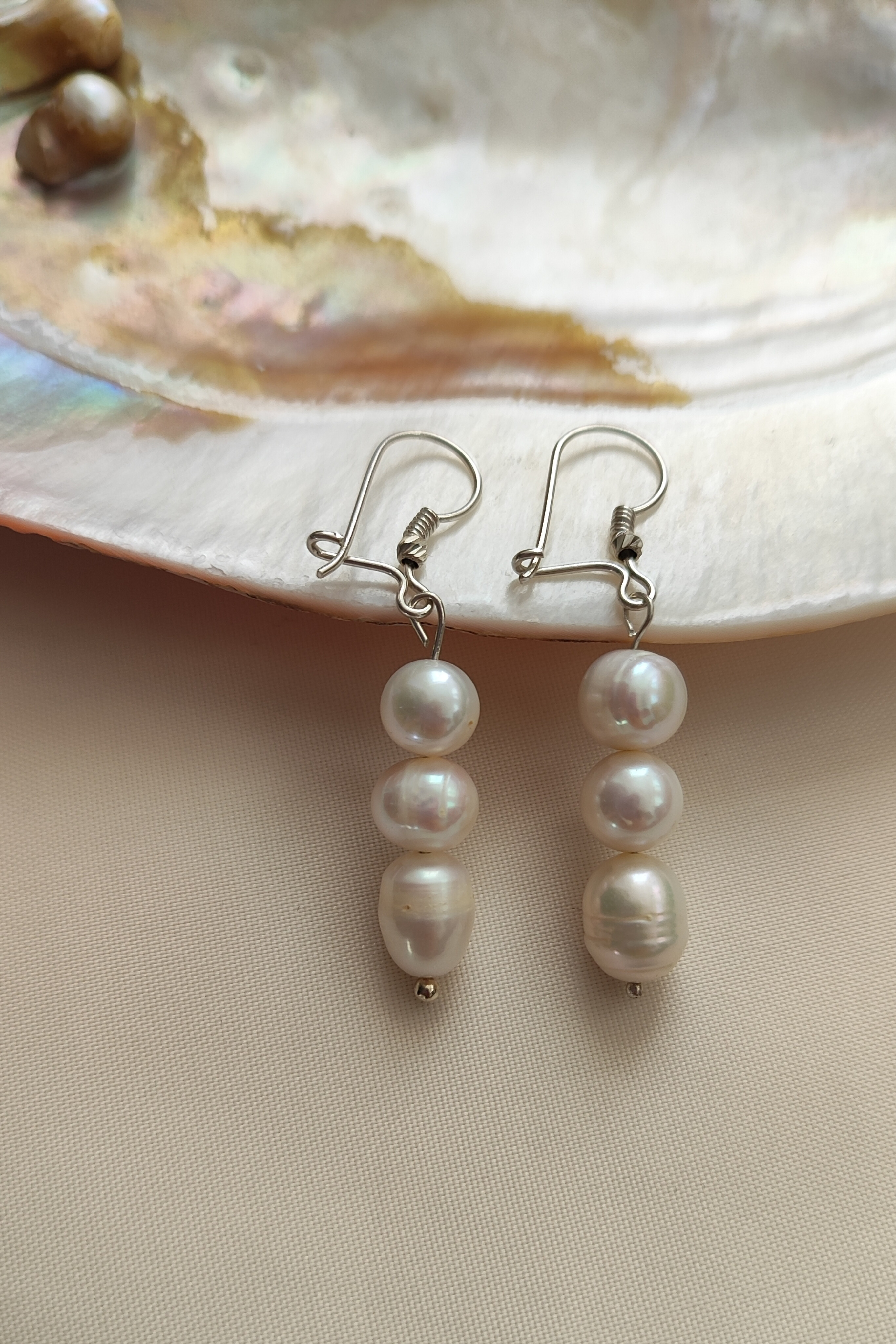 گوشواره مروارید پرورشی سفید رنگ با پایه گوشواره نقره 925عیار