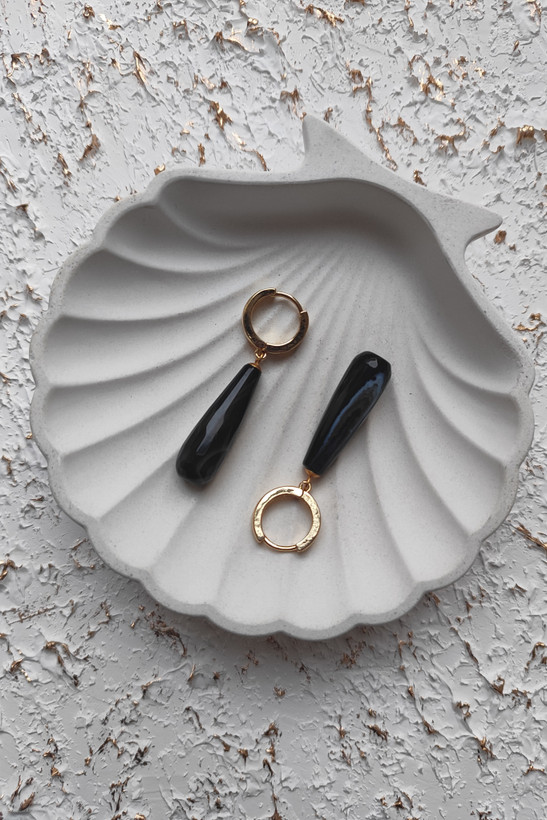 این گوشواره ظریف با طراحی کلاسیک و سنگ طبیعی عقیق مشکی تراشخورده، جلوهای شیک و در عین حال مینیمال به استایل شما میدهد.