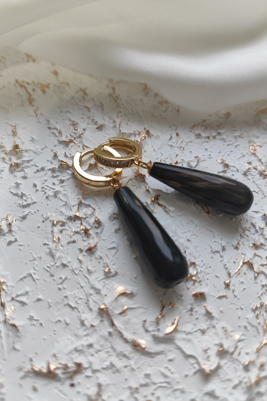 گوشواره سنگ عقیق مشکی و آبکاری طلا – ظرافتی خاص برای استایلهای رسمی و روزمره