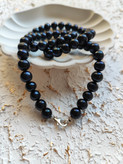 گردنبند مروارید پرورشی سرمه ای ۸میل با قفل و اتصالات نقره