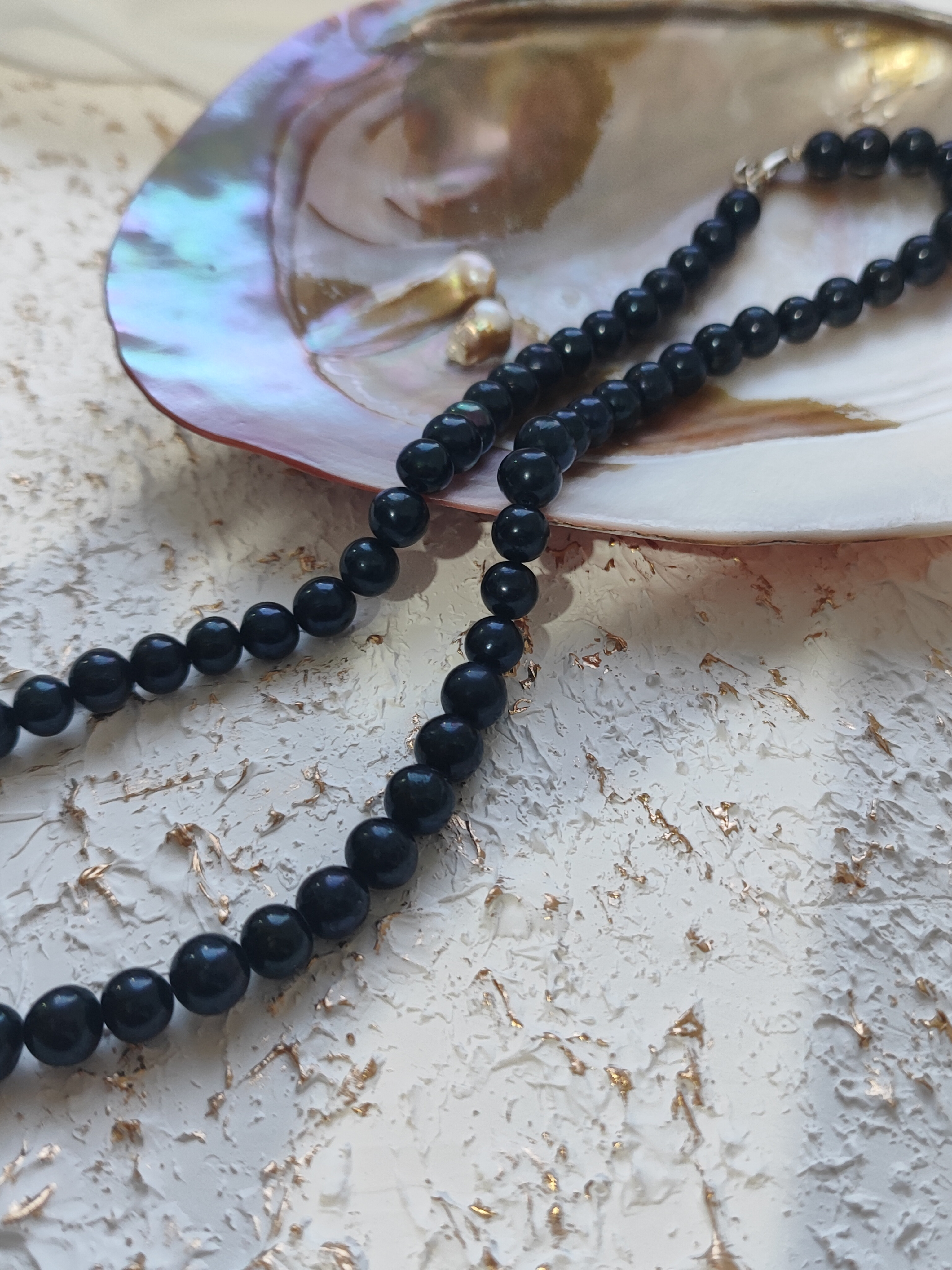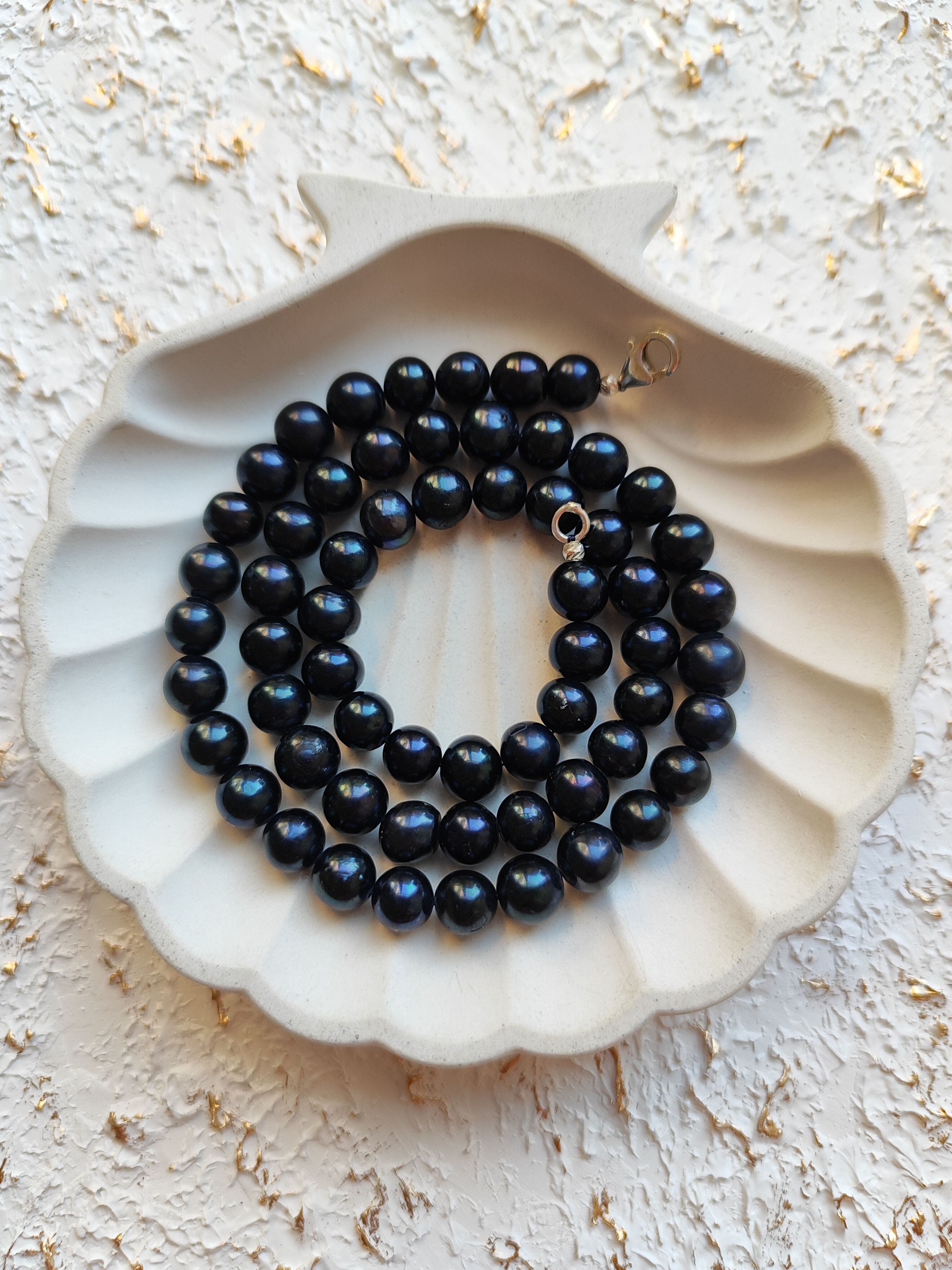 گردنبند مروارید پرورشی سرمه ای ۸میل با قفل و اتصالات نقره