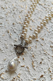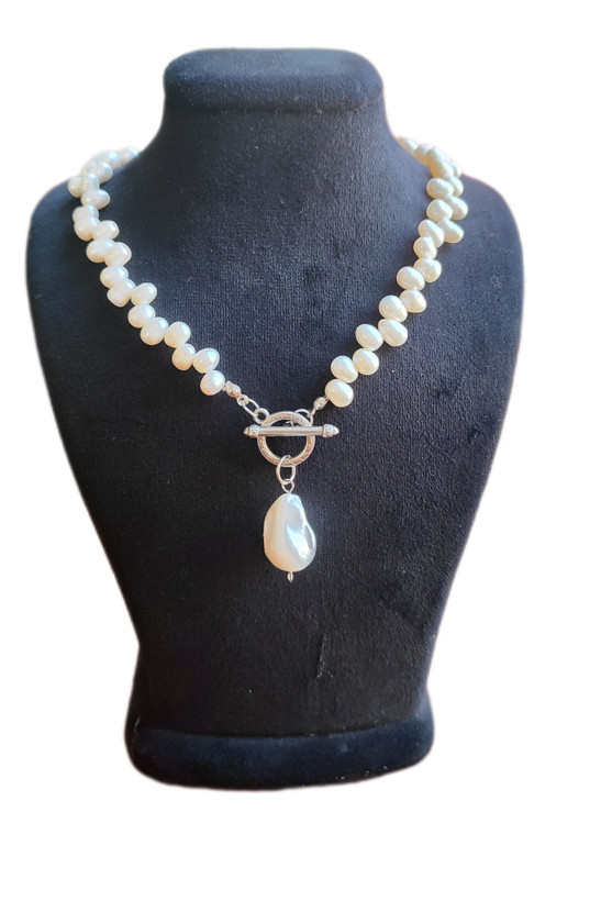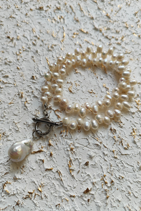 گردنبند مروارید پرورشی سفید با آویز مروارید باروک و قفل و اتصالات استیل|ٱلگا