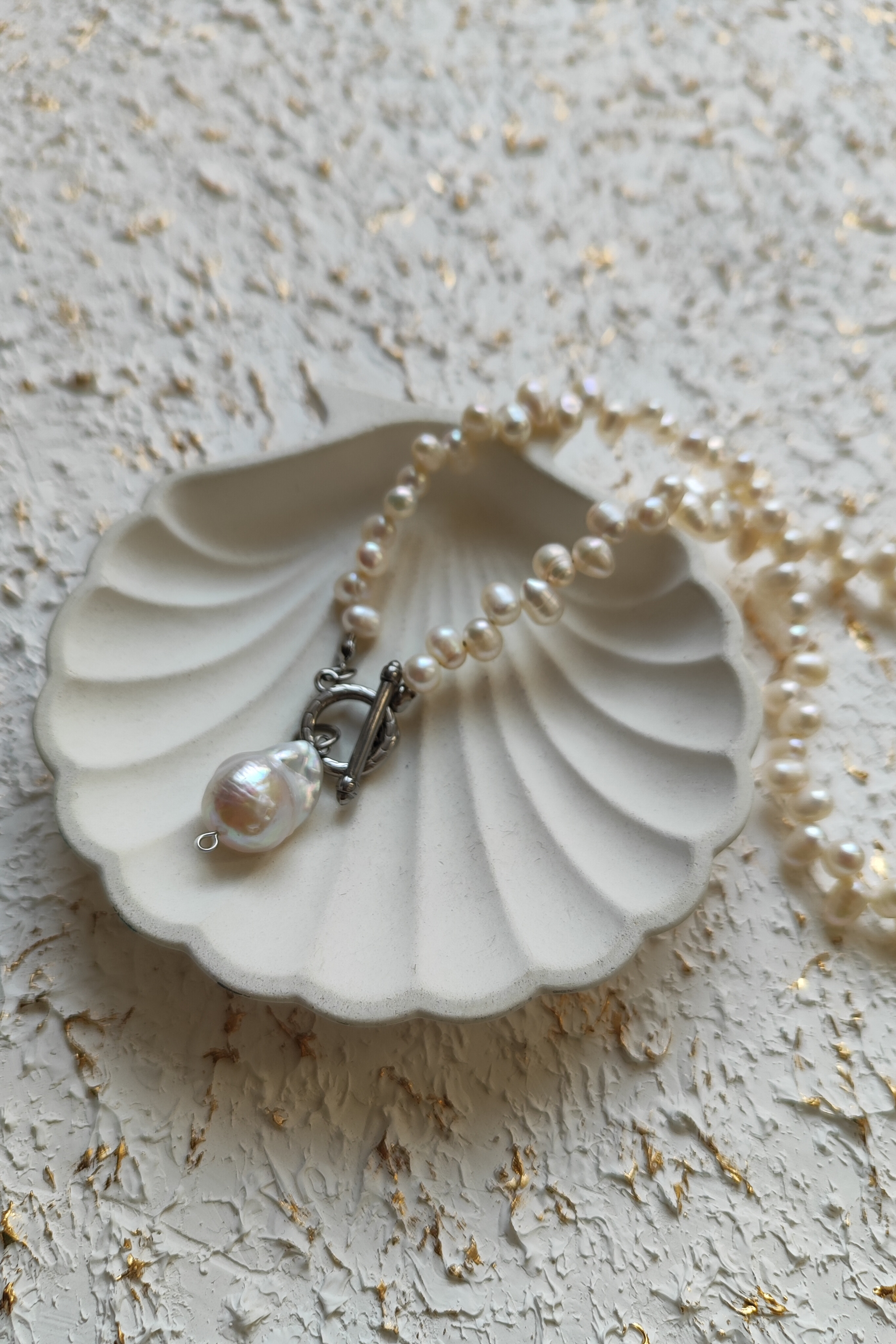 گردنبند مروارید پرورشی سفید با آویز مروارید باروک و قفل و اتصالات استیل|ٱلگا