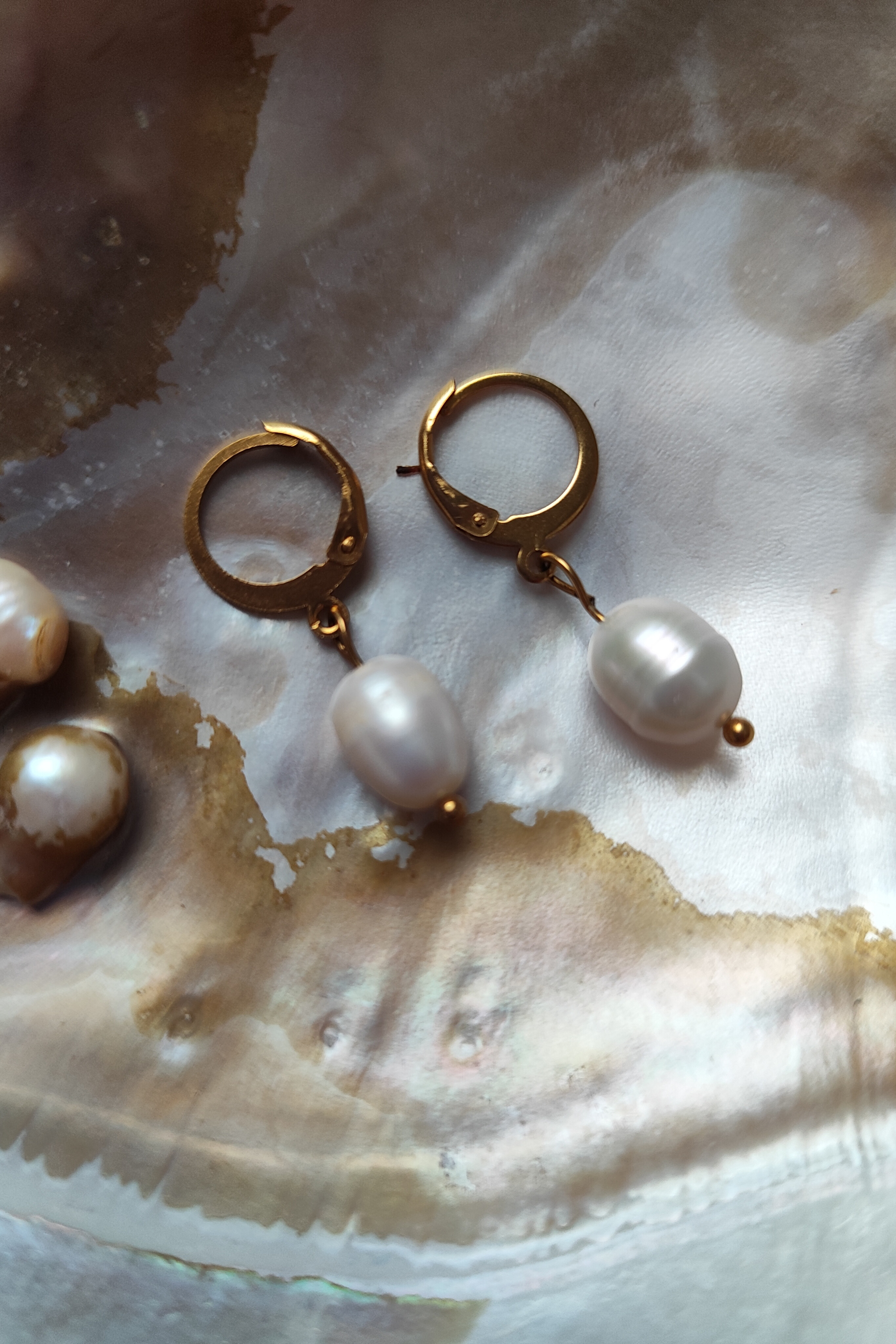 گوشواره مروارید پرورشی تک مروارید سفید گندمی |زیبایی طبیعی و لوکس