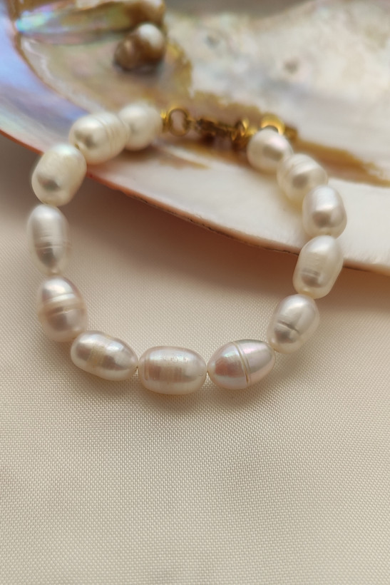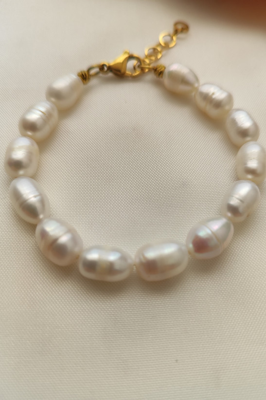 درخشش طبیعی مرواریدها و فرم گندمیشان، این مدل را به یک اکسسوری خاص و زنانه تبدیل کرده که همیشه روی دست میدرخشد.