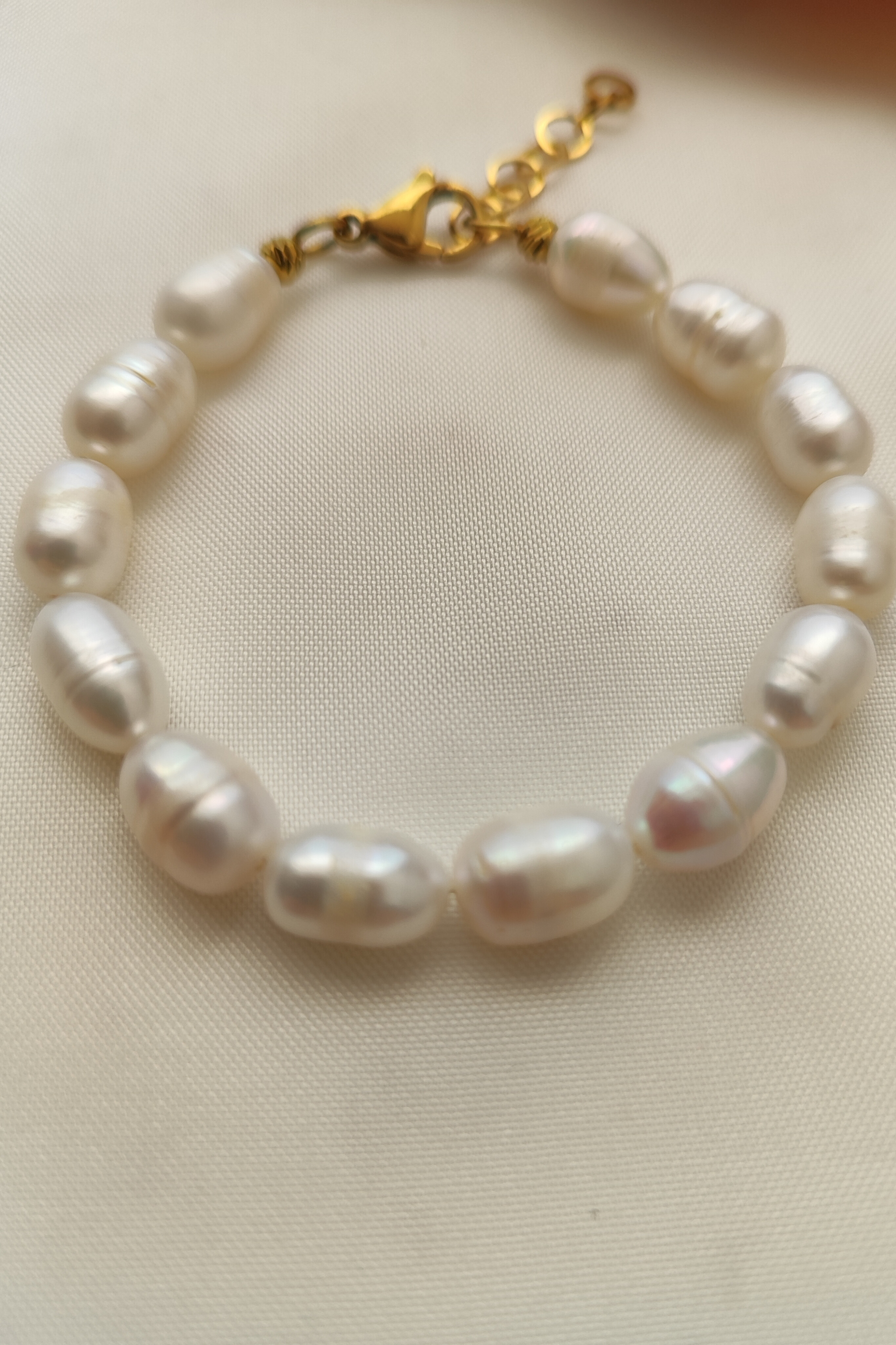 درخشش طبیعی مرواریدها و فرم گندمیشان، این مدل را به یک اکسسوری خاص و زنانه تبدیل کرده که همیشه روی دست میدرخشد.