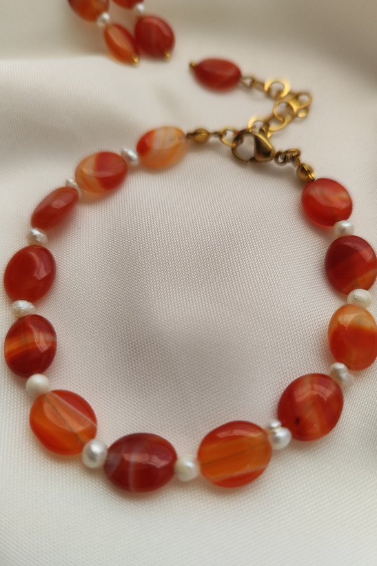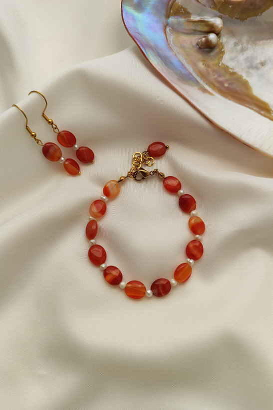 نیم ست دستبند و گوشواره عقیق و مروارید پرورشی