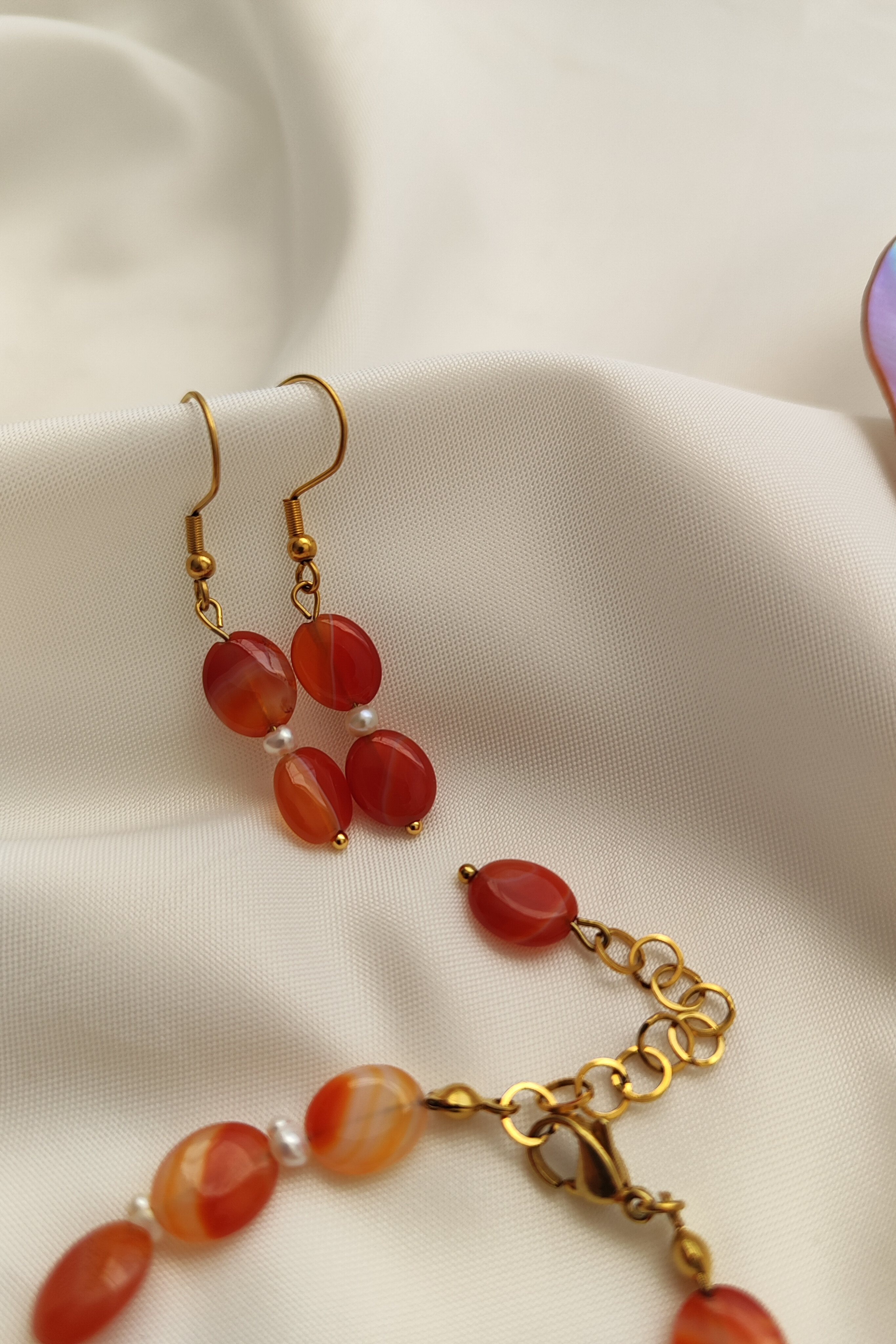 نیم ست دستبند و گوشواره عقیق و مروارید پرورشی