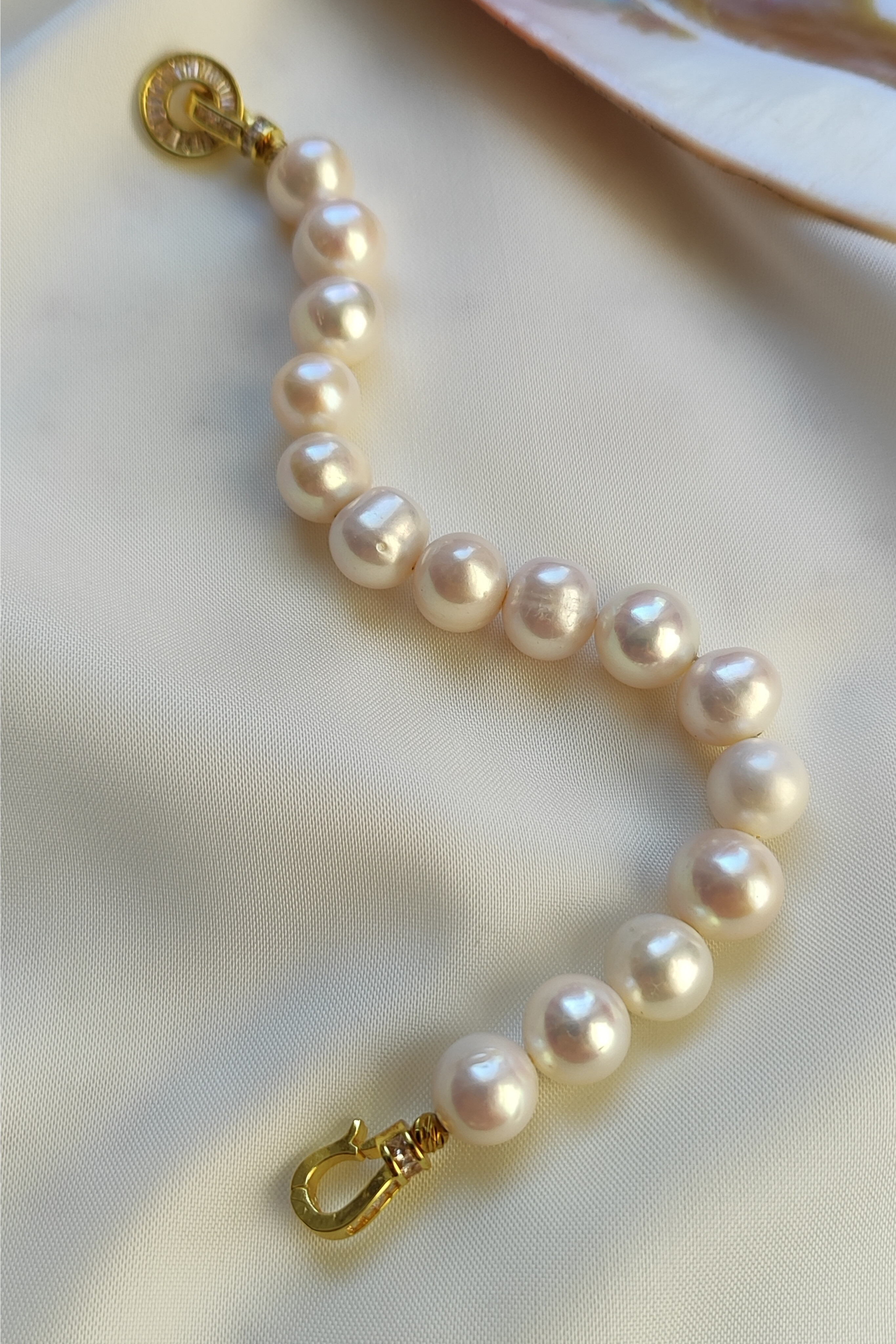 این دستبند زیبا از مروارید پرورشی گرد سایز 12میلی متر با قفل و اتصالات سوارسکی وارداتی با کیفیت رنگ ثابت و ضد حساسیت که زیبایی آن را دو چندان کرده ساخته شده است .