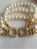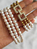 دستبند مروارید پرورشی سه لاین با قفل سوارسکی